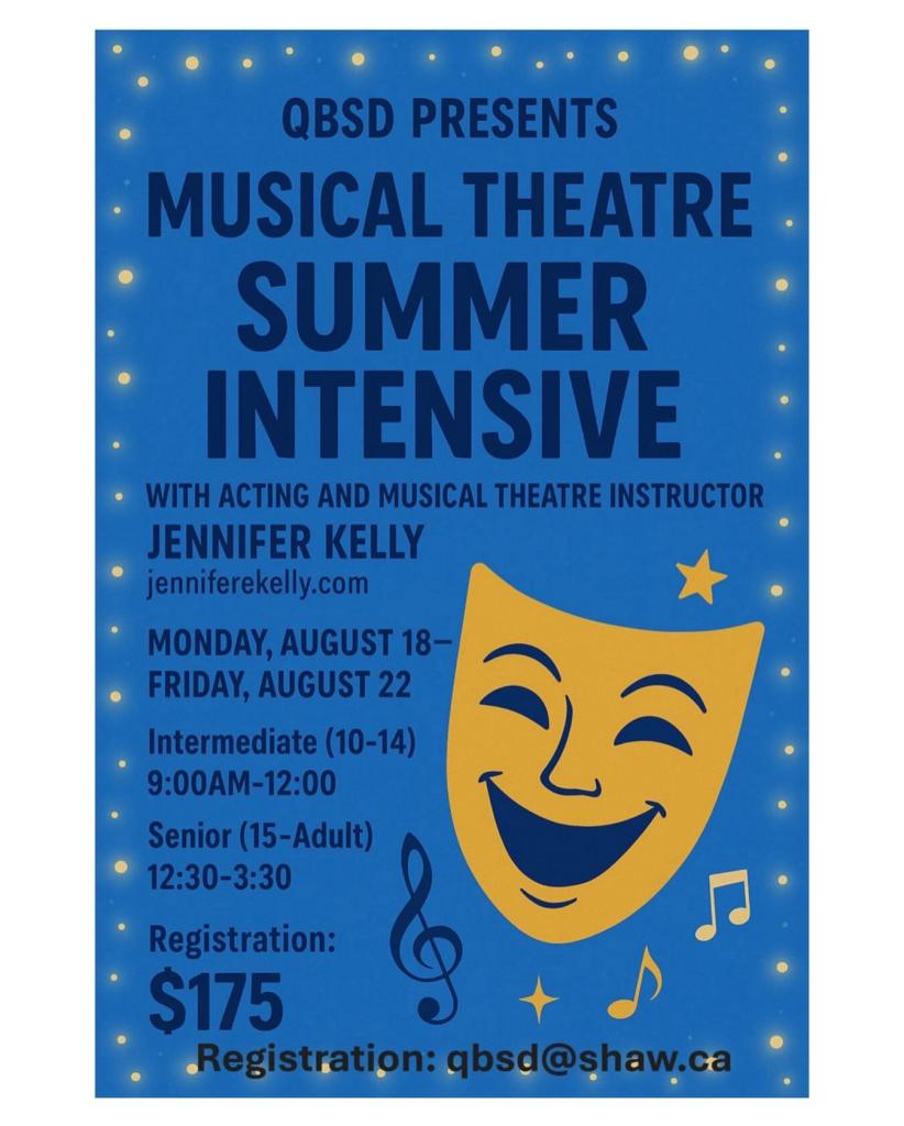 I am teaching a Musical Theatre Workshop August 18-22, 2025 at The Qualicum Beach School of Dance. More information and registration below:
